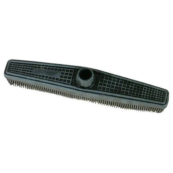 Ce balai de couleur noire en caoutchouc est conçu pour les salons de coiffure.