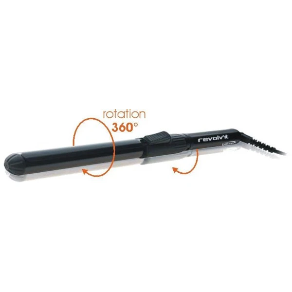 Les fers à friser Revolv’it, disponibles en différents diamètres, celui-ci est de 1 5 mm, passent très vite à une température de 200 °C.