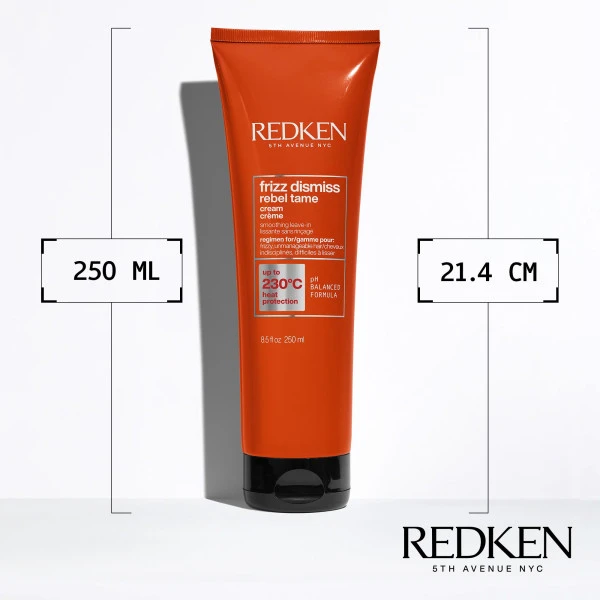 Soin anti-frisottis thermoprotecteur Frizz Dismiss Redken, pour des cheveux doux et brillants.