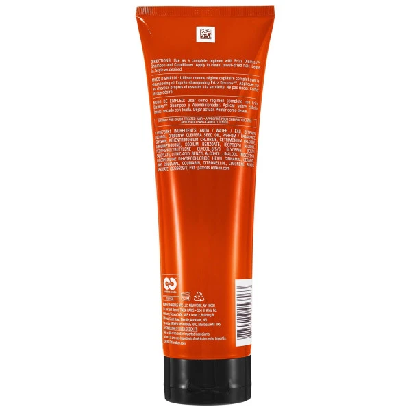 Application : Après avoir appliqué le shampooing et l’après-shampooing Frizz Dismiss, utilisez le soin sans rinçage sur cheveux humides et séchés à la serviette. Ne pas rincer.